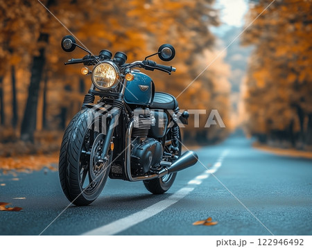 秋の並木道に佇むクラシックバイク|ネオレトロスタイルのオートバイ