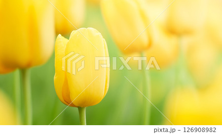 一面に咲く黄色いチューリップの花畑 ストロングゴールド