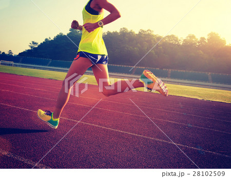 Runner sprinting towards success on run path running athletic track. Goal achievement concept.