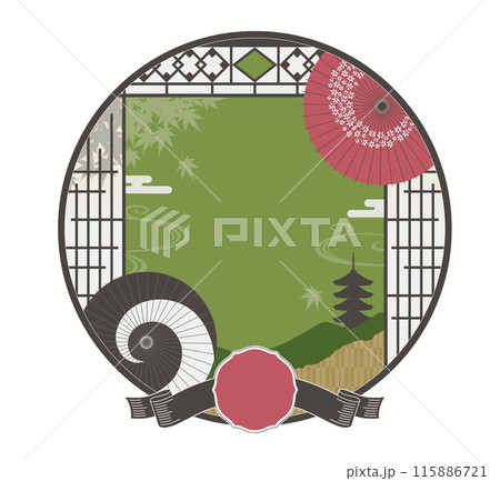 京都をイメージした障子の窓からの風景デザインテンプレート緑