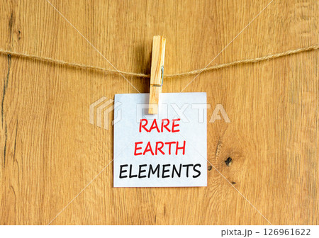 Rare earth elements symbol. Concept words Rare earth elements on beautiful white paper on wooden clothespin. Beautiful wooden background. Business and rare earth elements concept. Copy space.