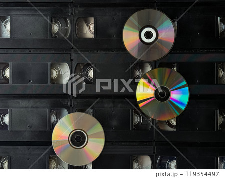 Retro media: vhs tapes and cds capturing nostalgic tech evolution