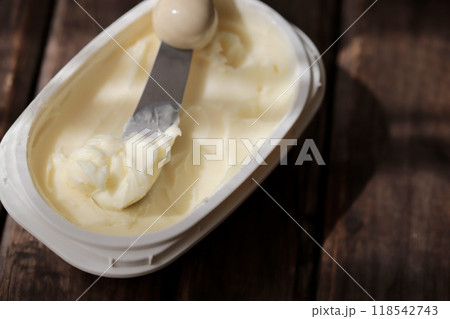 マーガリンとバターナイフ トランス脂肪酸低減マーガリン