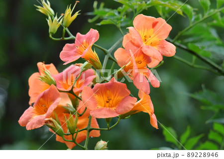 鮮やかでポジティブなノウゼンカズラの花ー七