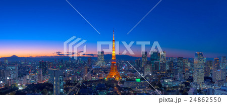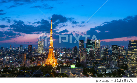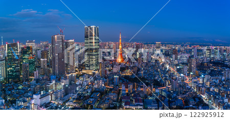 東京タワーと東京都心の都市風景 ブルーモーメント