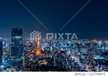 東京都心の夜景をバックにした麻布台ヒルズと東京タワー
