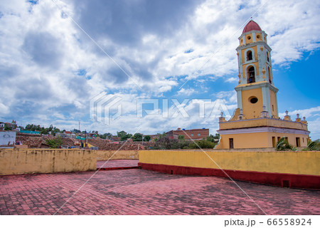 キューバ トリニダーのマヨール広場からの革命博物館の眺め