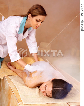 Woman in foam, turkish bath, hamam