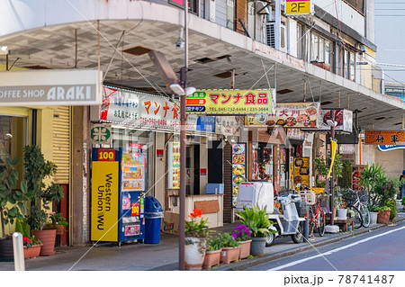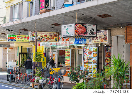 横浜 福富町 キャバクラ 飲み屋 ソープランド 看板 風俗街 歓楽街 晴れ 昼 午前 明るい