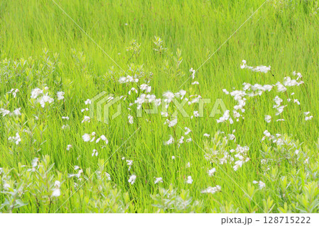 夏の尾瀬 満開のワタスゲとニッコウキスゲ 研究見本園