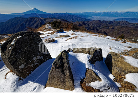 冬の金峰山稜線から見る八ヶ岳・南アルプスの山並み