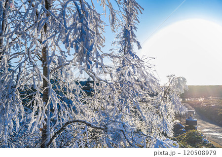 八ヶ岳連峰・硫黄岳への登りから見る厳冬の赤岳・阿弥陀岳と南アルプス