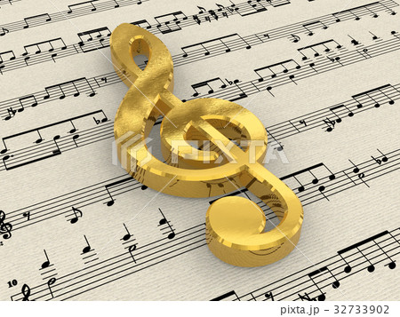 Golden treble clef on score paper