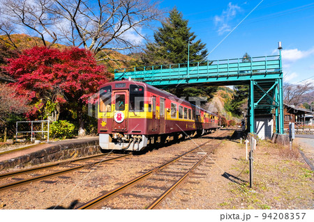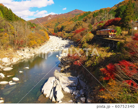 わたらせ渓谷鐵道 紅葉のわたらせ渓谷を走るトロッコわたらせ渓谷号(沢入付近)