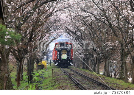 京都 亀岡 桜 線路 トロッコ 春 広告 素材 季節 四季 快晴 SNS