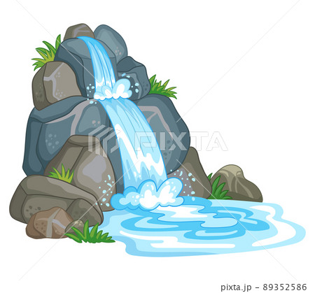 Waterfall cascade in mountains. Waterfall front view isolated in white background. Vector illustration