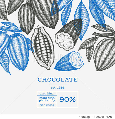 Cocoa Banner Template. Chocolate Retro Cocoa Beans Background. Vector Vintage Style Hand Drawn Illustration.