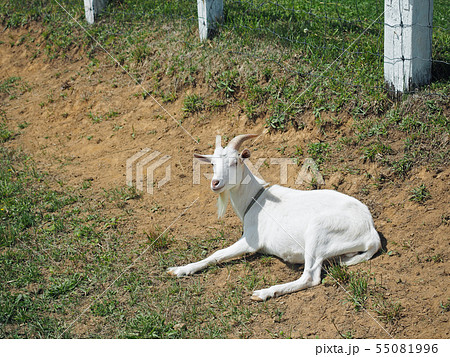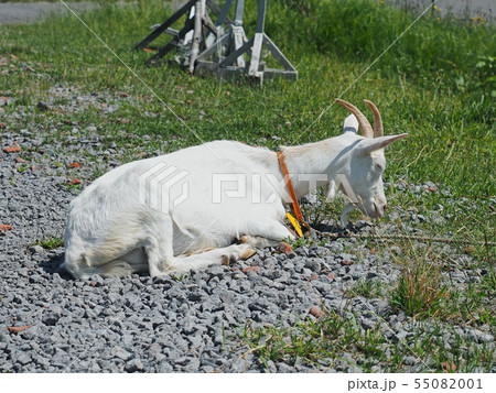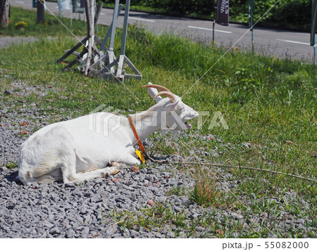 居眠りをするヤギ/北海道 赤井川村 ホピの丘