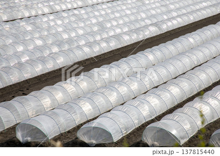 畑にほどこされたビニールトンネル