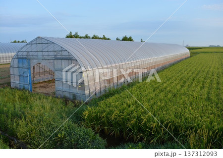 田園の中のビニールハウス