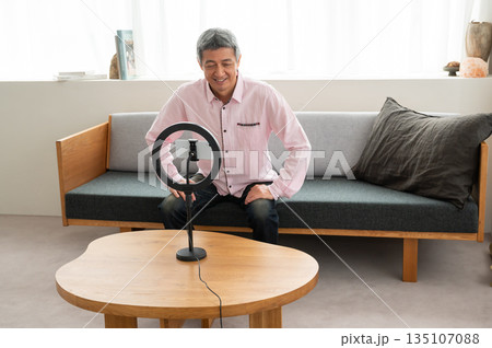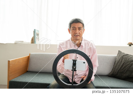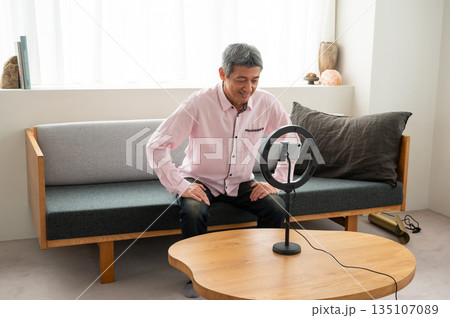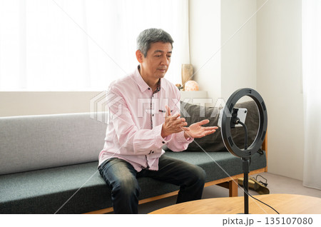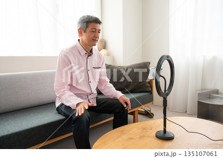 動画配信するシニア男性