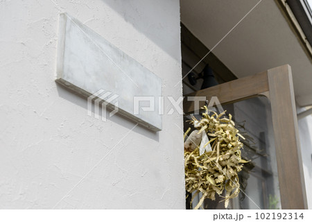 戸建住宅の玄関、表札とインターホンと郵便受け