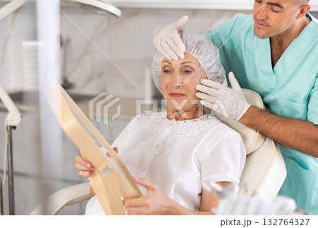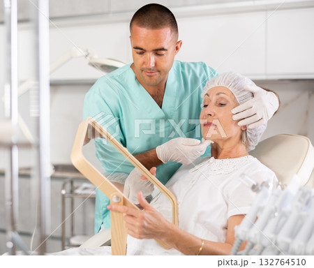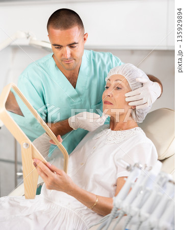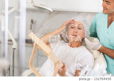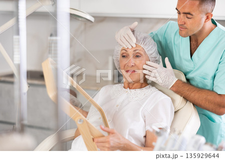 Young doctor perfoming face injecting