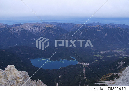ツークシュピッツェから見るアルプスの山々とアイプ湖