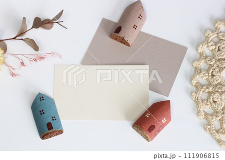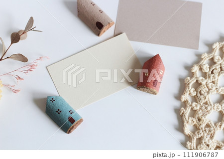 メモとお家 丸いドイリーとドライフラワーでナチュラルなイメージ