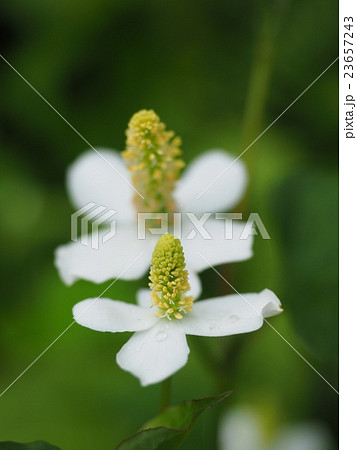 初夏の野の花・花の時期のドクダミ・白バック縦位置