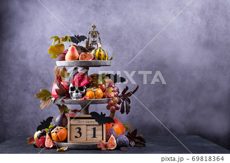 Halloween composition with autumn fruits