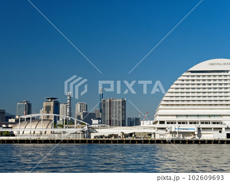 神戸ハーバーランドから見る高層ビル群やメリケンパークオリエンタルホテル