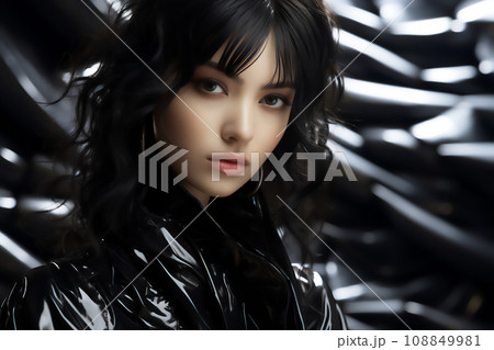 カメラ目線の黒髪の美しいクールな女性 Generative ai
