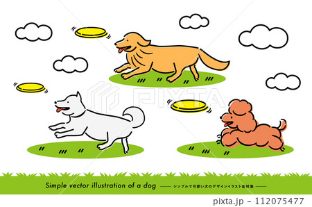 ゴールデンレトリーバー・柴犬・トイプードルのドッグランで舌を出しながら走る・遊ぶ・飛び跳ねるイラスト