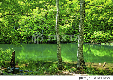 初夏のドッコ沼 新緑の風景 山形県山形市
