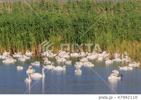 white swans in Danube Delta, Romania