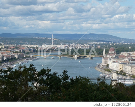 ハンガリー ゲッレールトの丘から眺めるドナウ川(曇天)