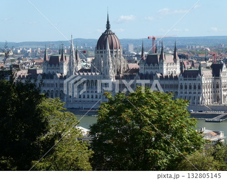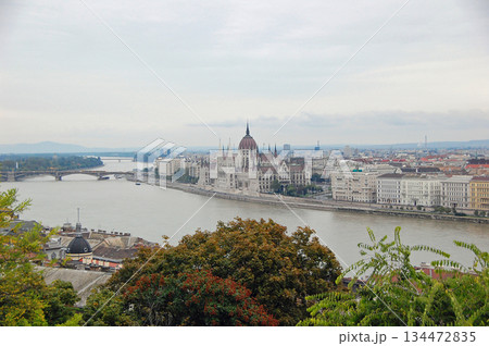 ハンガリー 王宮の丘から眺める国会議事堂(曇天)