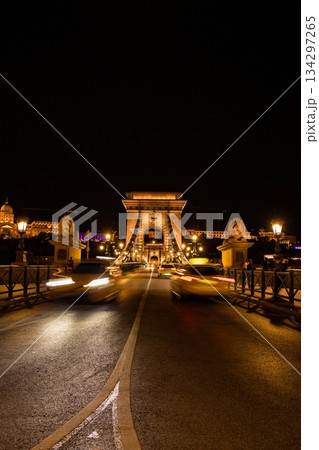 ライトアップされた夜のブダペスト・セーチェーニ鎖橋