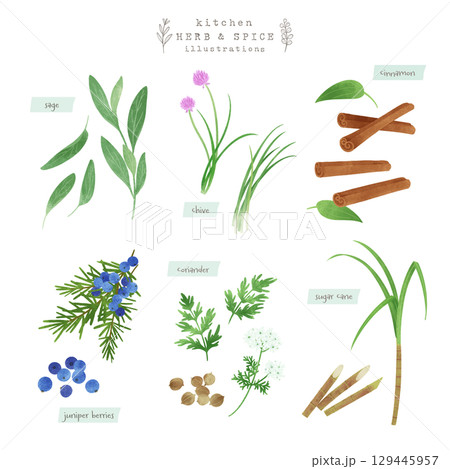 キッチンハーブとスパイスの水彩イラスト-2