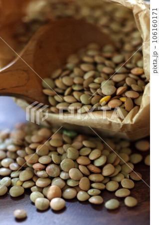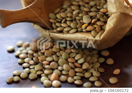 紙袋からこぼれ出るレンズ豆