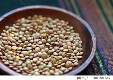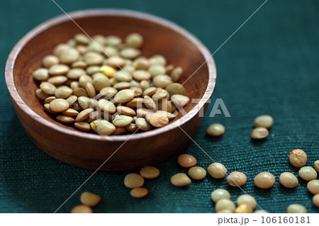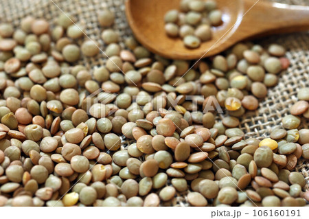 テーブルに広げたレンズ豆の背景画像