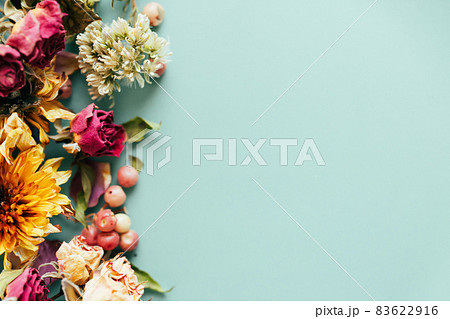 ドライフラワーのブーケ ナチュラルな植物の背景素材