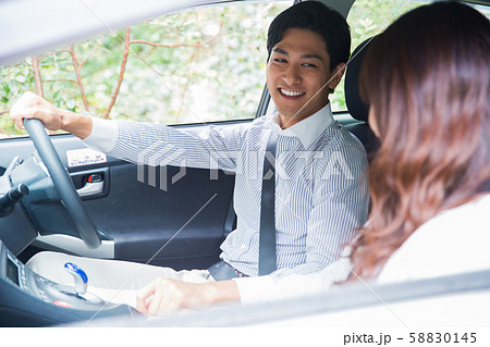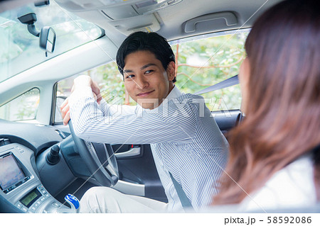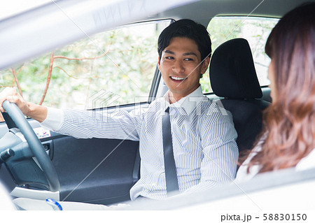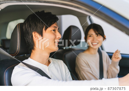 ドライブデートする若いアジア人カップル,夫婦