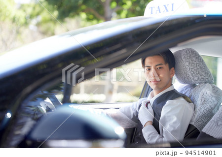 笑顔で視線を向ける女性ドライバー タクシー乗務員 イメージ