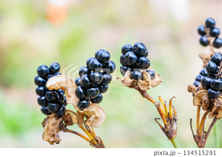 秋に実ったヒオウギの黒い種