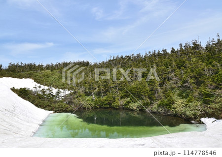日本百名山 雪解けの八幡平 霧のメガネ沼