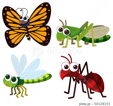 Four different types of insects on white
