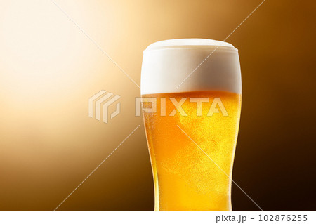ビール - きめ細かい泡が立った、よく冷えたビールのグラス