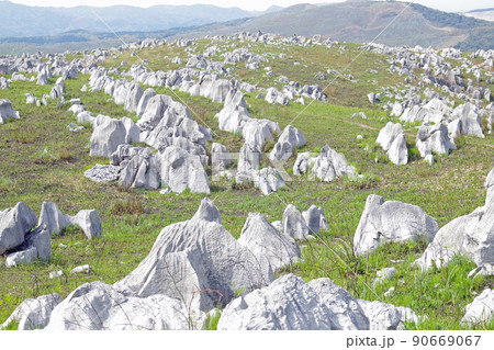 中国地方・秋吉台・カルストロード、長者ヶ森付近に広がるカルスト大地と草原の眺め・山口県美弥市(1)